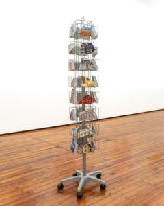 Luigi Pensa, Milano Rock Postcards, 2025. Struttura in ferro e plastica, stampa digitale su granito,