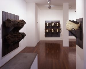 Nel 1972 si chiude la bocca con un calco in oro e nel 1976 contamina i locali della galleria milanese Ala con il fumo nero di una ciminiera. Nel 1972 viene invitato per la prima volta a esporre alla XXV Biennale di Venezia. Partecipa alla mostra “Zeitgeist” (1982) a Berlino e nel 1986, al Museum of Contemporary Art di Chicago, viene allestita una grande antologica. Radicale è l’evento espositivo di Barcellona del 1989: nell’ambiente dell’Espai Poublenou quarti di bue appena macellato vengono appesi con ganci a lastre di ferro e illuminati tragicamente da lampade a olio. Nello stesso anno presenta un’installazione alla Reggia di Capodimonte a Napoli. Il 1991 vede la successione di due eventi di particolare valore simbolico, rispettivamente alla Nuova Tretjakov di Mosca e alla Sinagoga di Stommeln a Pulheim. A Napoli nel 1996 appende dei mobili alla volta del porticato di Piazza Plebiscito. Nel 1994 in una nave in disuso, attraccata nel porto del Pireo, l’artista stesso cura una selezione di trent’anni del suo lavoro sotto il titolo di Cargo Ionion. In questi ultimi anni Kounellis raggiunge con la sua arte il Messico (1999), l’Argentina (2000) e l’Uruguay (2001), dove propone le sue tipiche espressioni formali in diverse configurazioni. Il 21 aprile 2002, nell’ambito di una serie di performance esemplari degli anni ’60 e ’70 riproposte dalla Whitechapel di Londra, l’artista sceglie i 12 cavalli a testimonianza della conquista dello spazio architettonico. Per la Galleria Nazionale d’Arte Moderna di Roma allestisce nel 2002 un’imponente labirinto di lamiera in cui crea degli approdi dove inscena alcune delle sue visioni. Nel 2003 sotto il patronato del United Nations Department of Public Information e della città di Venezia presenta all’interno del progetto Art of the word una serie di opere concepite per la corte, il deposito dei libri, e il museo del XVIII secolo del Monastero armeno situato sull’isola San Lazzaro a Venezia.