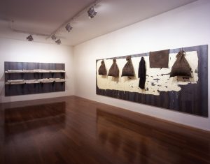 Come Jannis Kounellis descrive: «…nell’arte non esiste evoluzione che sia indipendente dagli eventi che la determinano…» e ancora: «…Penso che la mia più grande aspirazione… sia di diventare un ago per cucire tutto insieme, …ricucire tutto quanto di nuovo…», e ancora «non riuscirò a ricomporre la totalità, ma l’onesto tentativo di un pittore è tentare …». La drammaticità insita nelle sue opere è molto forte, deriva dal confronto fra gli oggetti che risulta immediato e radicale. Jannis Kounellis, artista di origine greca (Pireo, Atene, 1936), giunge in Italia nel 1956 e si stabilisce a Roma, dove studia all’Accademia delle Belle Arti sotto la guida di Toti Scialoja. Sin dall’inizio sono fondamentali nella sua formazione le opere di Burri e Fontana, come quelle di Pollock, Kline e Rauschenberg. Agli anni dell’Accademia risale la sua prima personale (1960) presso la Galleria La Tartaruga di Roma. A partire dal 1967 entrano a far parte dello spazio dell’opera il fuoco, la terra, la lana, il carbone, i sacchi di iuta, le piante e gli animali in una dialettica tra forme inerti e forme viventi. Da quel periodo una lastra di ferro sostituisce la tela, compaiono mensole a sostenere oggetti d’uso comune e si fa strada il concetto di “misura” desunto dalle dimensioni del foglio da disegno, del letto matrimoniale o della porta. Nello stesso anno partecipa alla mostra collettiva Arte Povera e IM Spazio curata da Germano Celant presso la Galleria La Bertesca di Genova. L’opera non si presta più solamente alla visione ma diventa percorribile. In questo senso la ricerca artistica di Kounellis raggiunge nuovi vertici con una delle sue più note installazioni, Senza Titolo (12 cavalli), del 1969, in cui dispone dodici cavalli vivi nella sala della Galleria L’Attico a testimonianza del rapporto tra lo spazio culturale dell’arte e quello naturale.