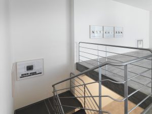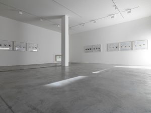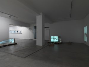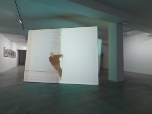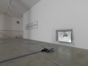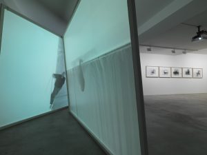 Infine, la terza parte della mostra è costituita da una serie di studi e maquette che l’artista ha realizzato per il progetto dedicato a Casa Malaparte a Capri, lo straordinario edificio opera di Adalberto Libera su commissione di Curzio Malaparte. Con questo lavoro, intitolato Figure descending a staircaise, Welz enfatizza ed esplora le suggestioni derivanti dalla particolarità del luogo, grazie all’inserimento di alcune sequenze riprese sulla celebre scalinata che costituisce il tetto dell’edificio. Il lavoro su Casa Malaparte sarà ripreso da Welz per una istallazione al Barcelona Pavillion, pensata ad hoc per lo spazio progettato dal grande architetto Mies Van der Rohe. Le due architetture, Casa Malaparte e Barcelona Pavillion, saranno poste in stretta relazione, fondendosi e compenetrandosi. L’architettura, che Welz trasforma in scultura, può così dialogare con se stessa, in un vortice di rimandi di cui l’uomo è protagonista principale e comparsa.